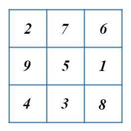 Задача.Даны числа 2345678910.Требуется вписать их в клетки квадрата так чтобы в любом направлении в сумме получилось одно и то же число.