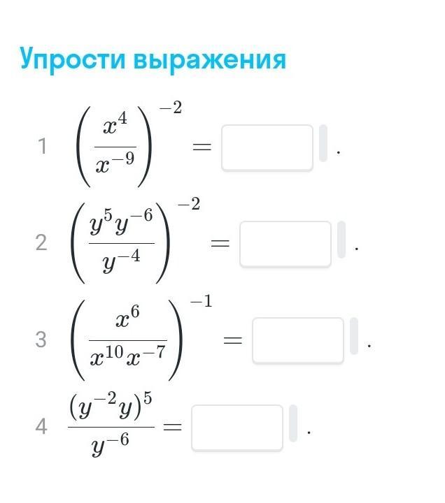 1) х в -26 степени 2)у в -6степени 3)х в -3 степени4) у в 20 степени