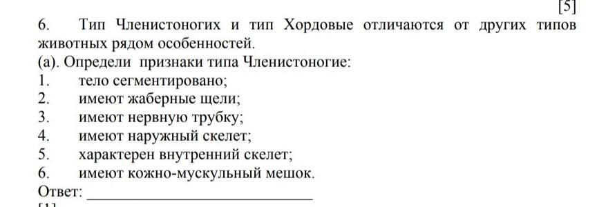 Жаберные щели, внутренний скелет, нервная трубка - тип Хордовые. Кожно-мускульный мешок характерен для червей, а сегментация и наружный скелет - для Членистоногих.