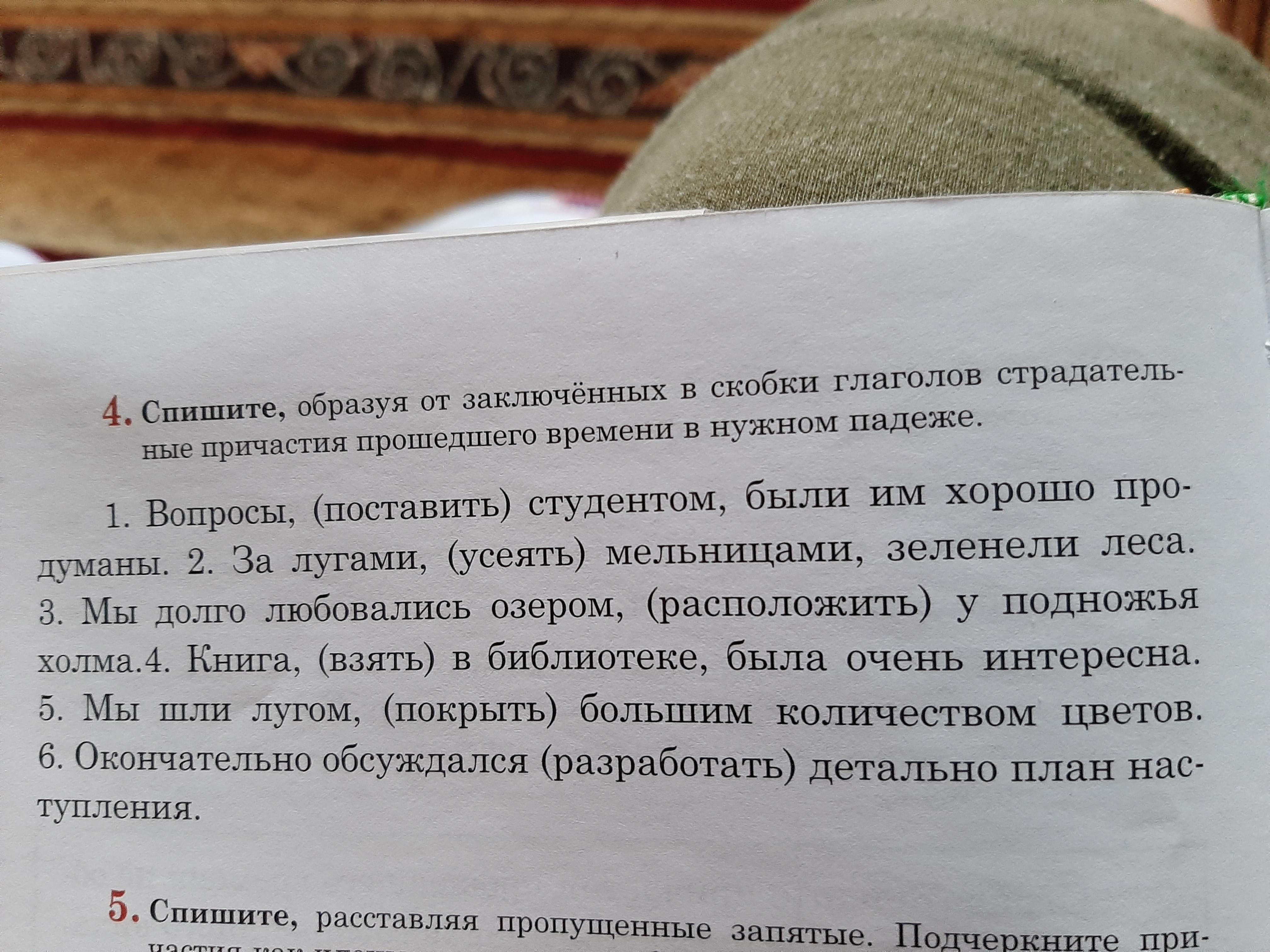 1. Поставленные 2. Усеянными 3. Расположенным 4. Взятая 5. Покрытого 6. Разработанный