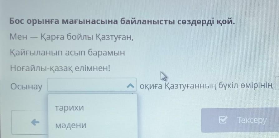 Казтуган жырау казтуганнын конфсымен коштасуы 2 сабак кайталау бос орынга магынасына байланысты создерди кой