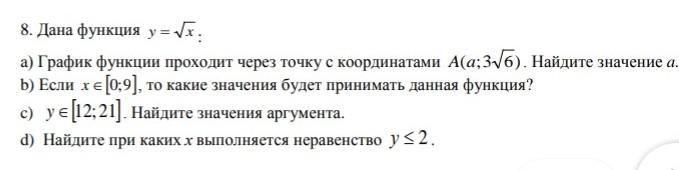 а) График функции проходит через точку с координатами А(а; 36). Найдите значение а. b) Если xe [o:9], то какие значения будет принимать данная функция?