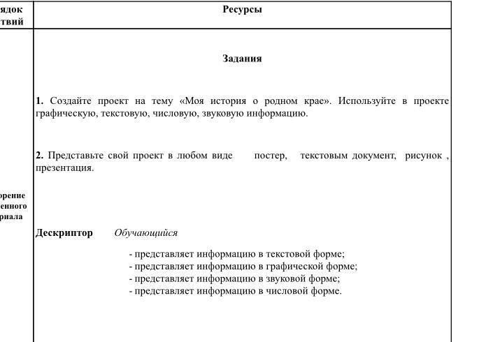 Здесь надо составить проект о родном крае,например:нарисовать,записать песню или создать графическое изображение на компьютере