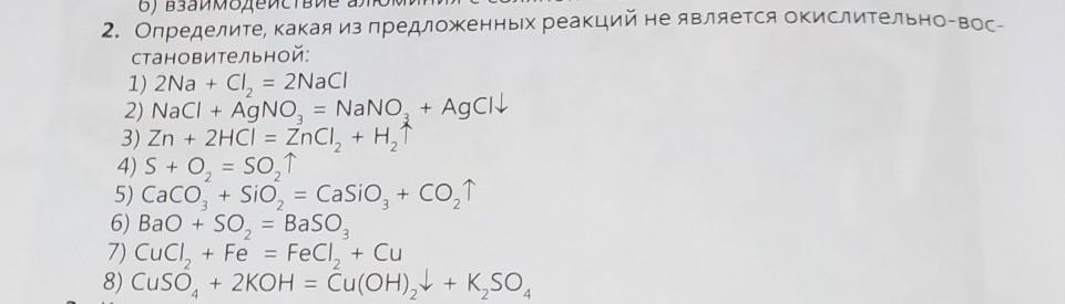 определите, какая из предложенных реакций не является окислительно-восстановительной