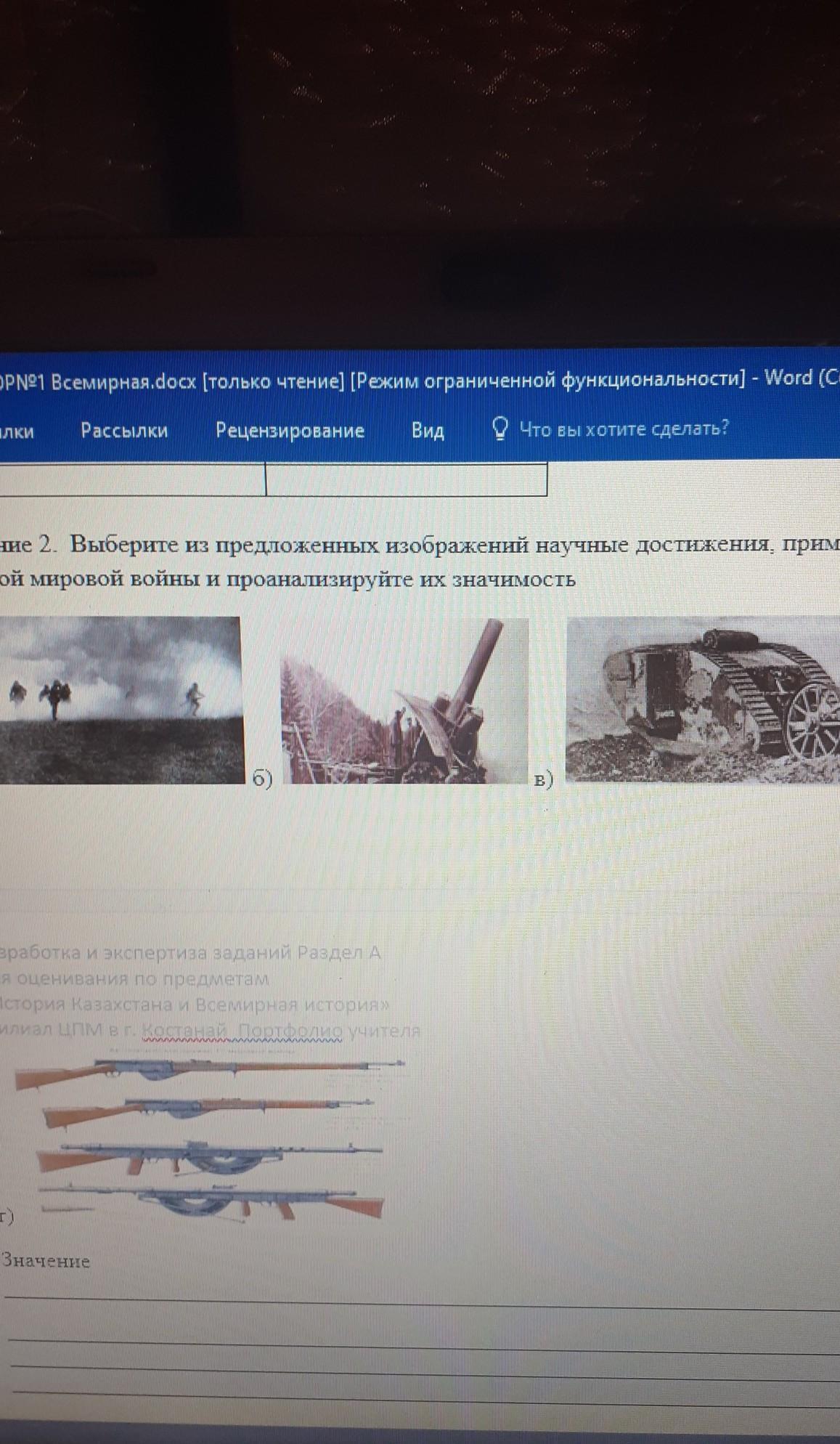 Выберите из предложенных изображений научные достижения применяемые в годы Первой мировой войны и Проанализируйте их значимость