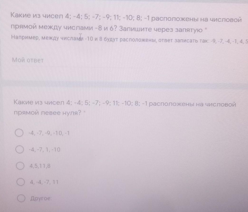 Какие из чисел 4; -4; 5; 7; -9; 11; -10; 8; -1 расположены на числовой