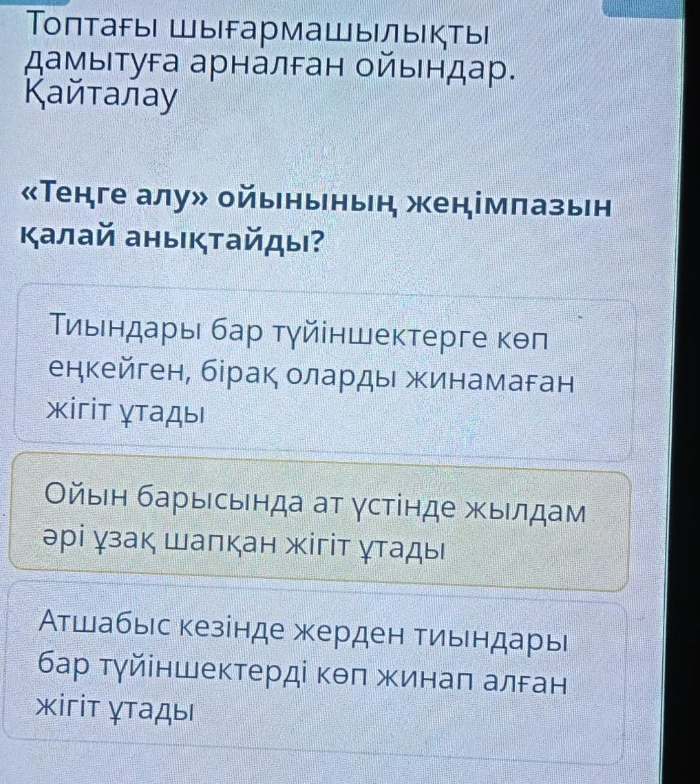 Ойын барысында ат үстіне жылдам әрі ұзақ шапқан жігіт ұтады