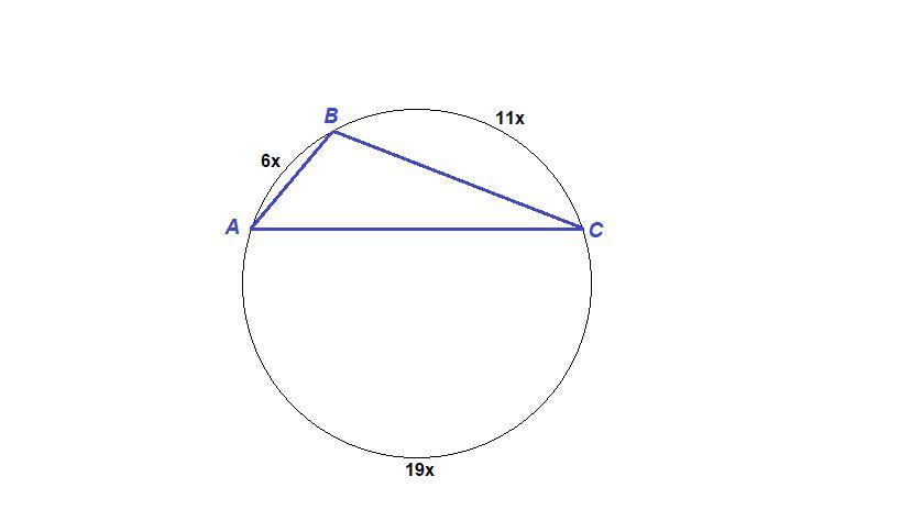 ∪АВ = 6х, ∪ВС = 11х, ∪АС = 19х.