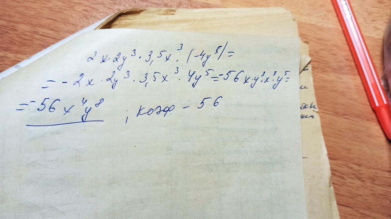 2x²y³ * 3,5x³ * (- 4y⁵) = - 28x²⁺³y³⁺⁵ = - 28x⁵y⁸