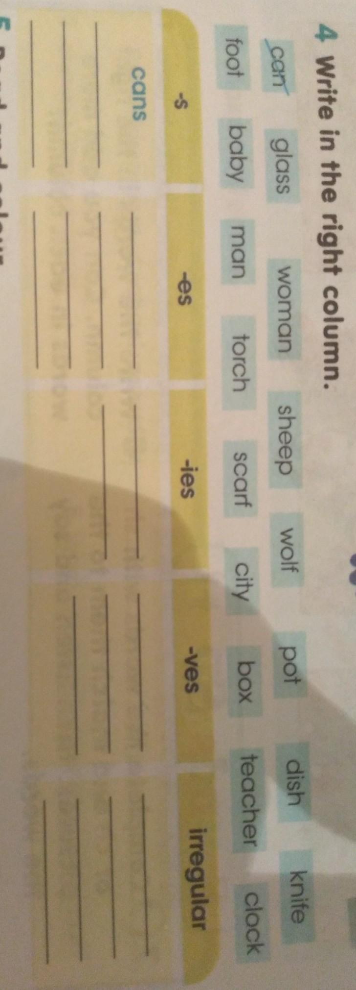 4 Write in the right column.