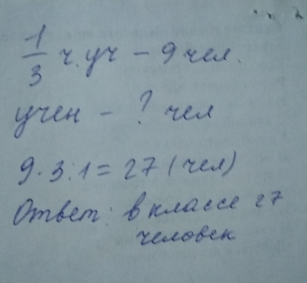 г) В классе 9 человек занимаются спортом. Это третья часть всех