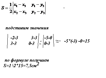 Чему равна площадь треугольника, вершинами которого являются точки А(-2;3), В(3;0), С(3;3)?