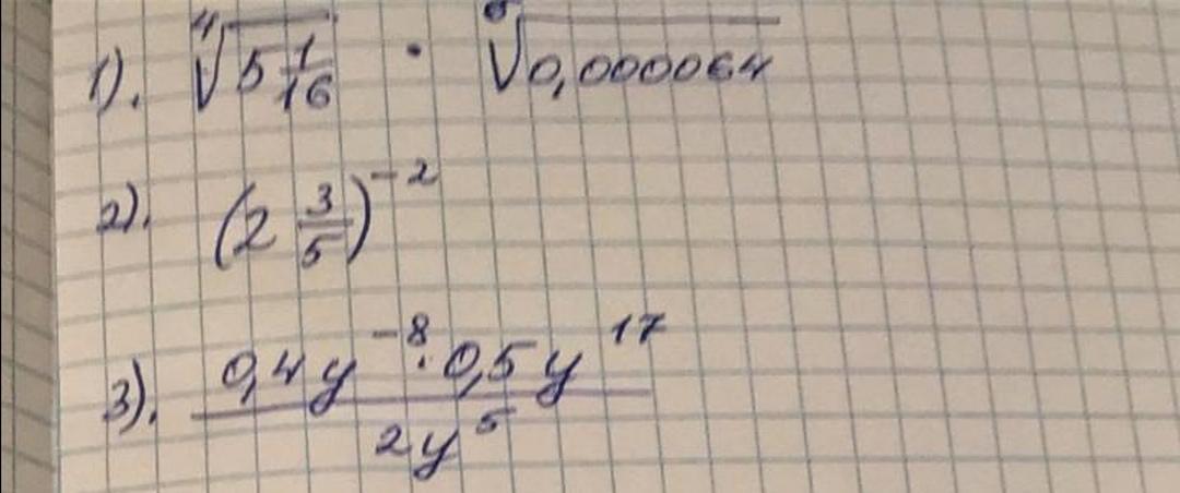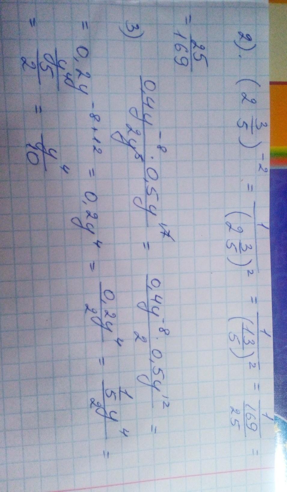 1) 3/250; 2) 25/169; 3) y^4/10
