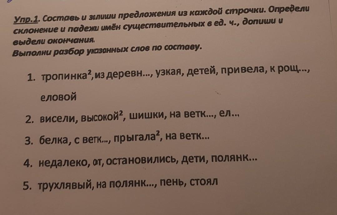 1. Узкая тропинка привела детей из деревни к еловой роще .