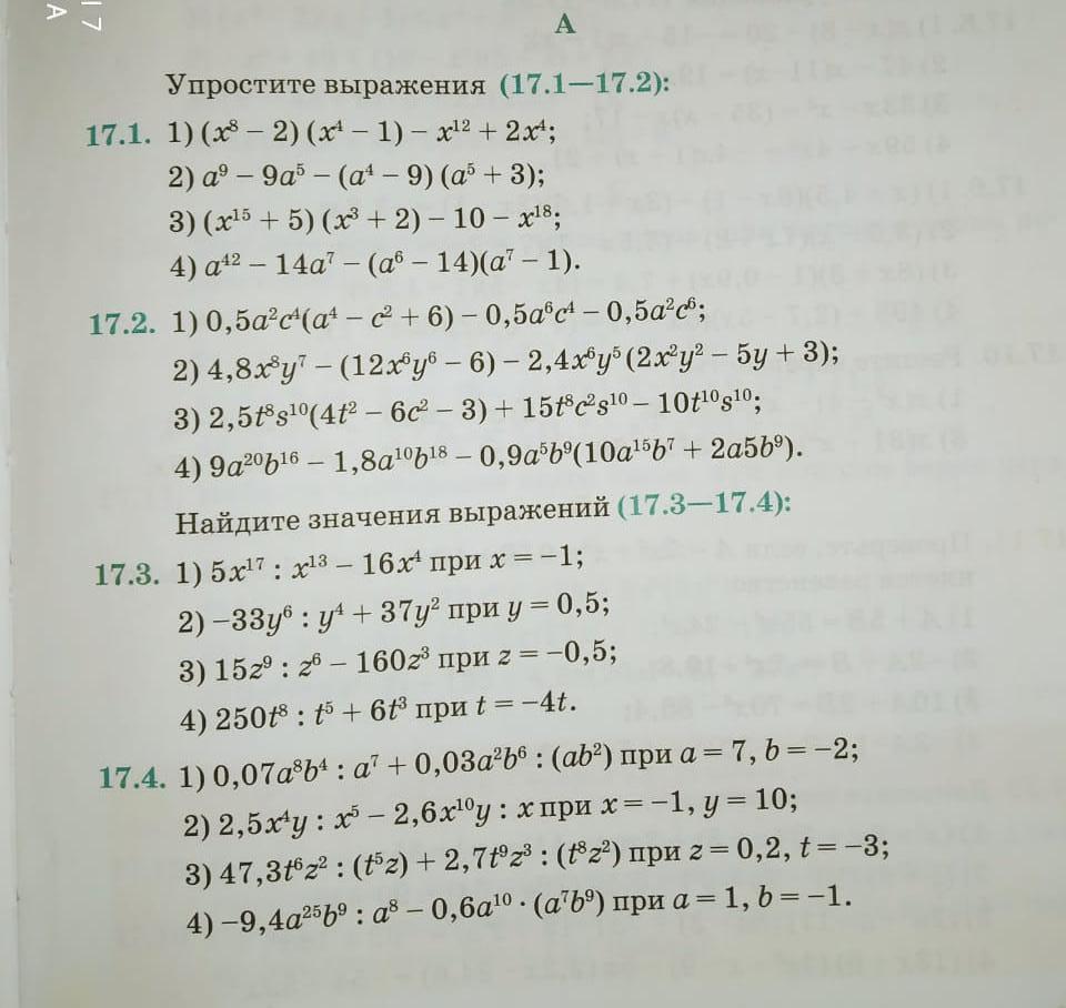 1) 5x⒄:x⒀-16x⑷ при x=-1