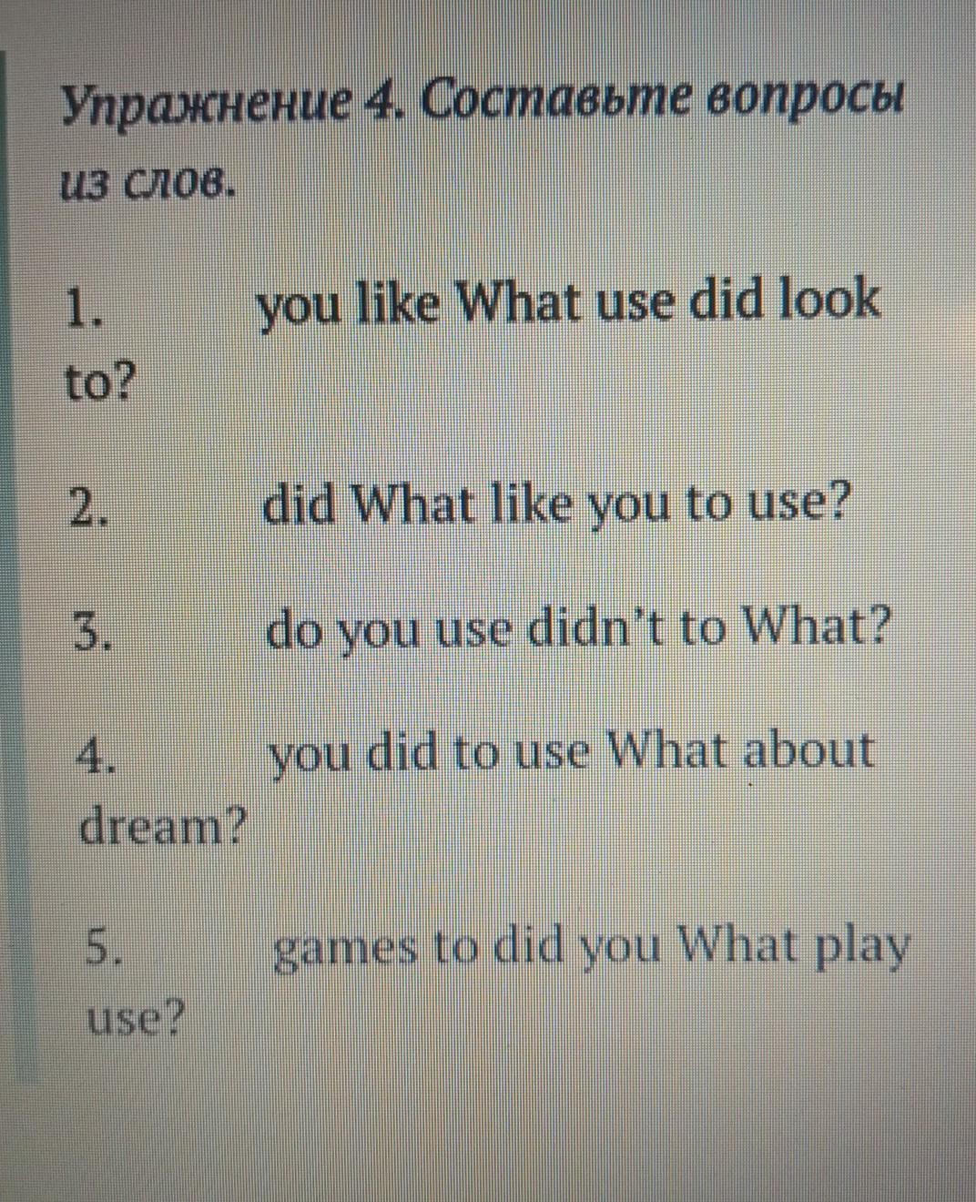 1)What look you to like did use?(Какой Взгляд ты вроде бы использовал?) или What you to look like did use?(Чем бы ты для вида пользовался?)