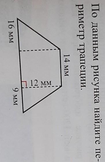 Высота 12 мм равна катетам прямоугольных треугольников по краям трапеции.