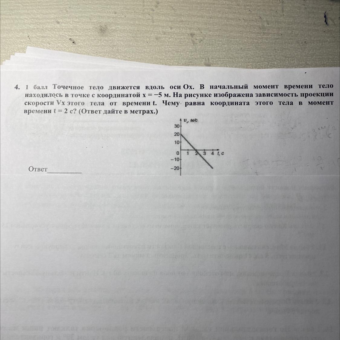 Нужно найти путь который пройдет тело за 2 секунды. Площадь фигуры под графиком скорости это пройденный путь. S=0,5*20*2 (0,5*a*h)
