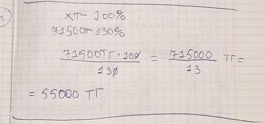После увеличения заработной платы на 30%, работник стал получать 71500 тг. Какова была заработная плата работника до её повышения?