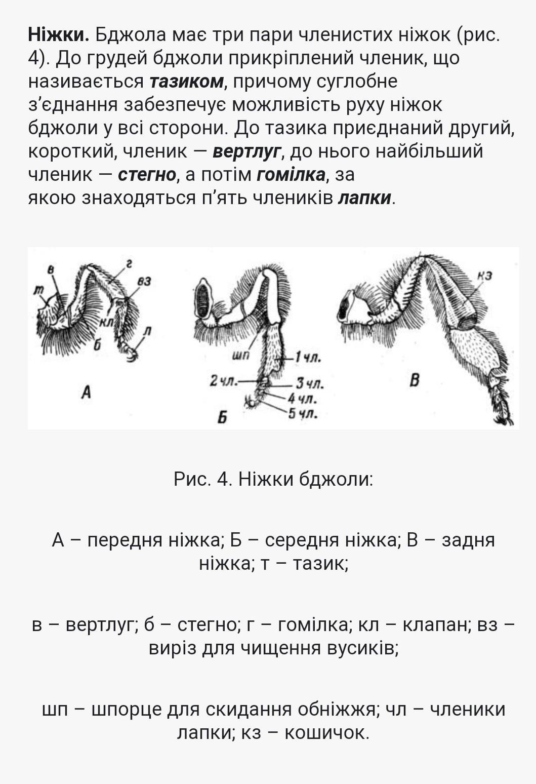 Будова ходильних ніг бджоли