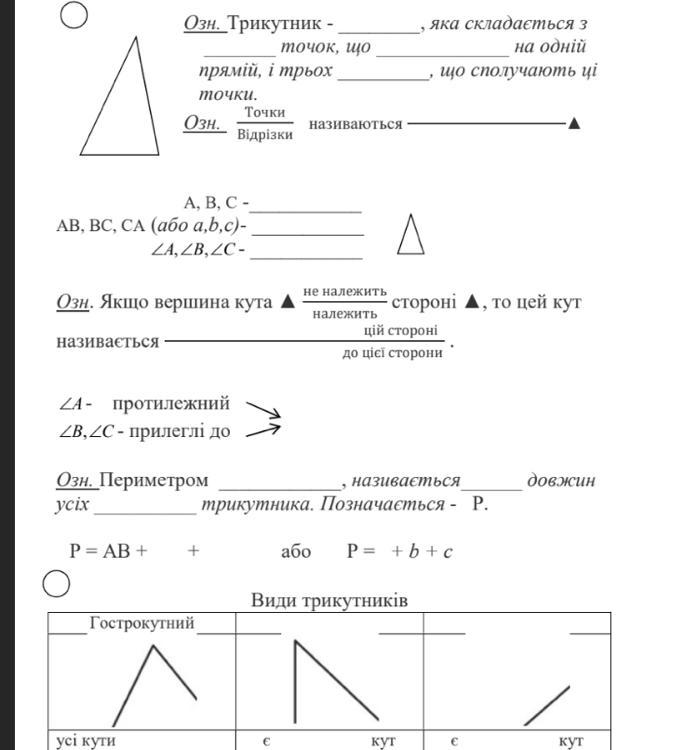 трикутник -фігура,яка складається з трьох точок, що знаходиться на одній прямій і трьох сторін,що сполучають ці точки