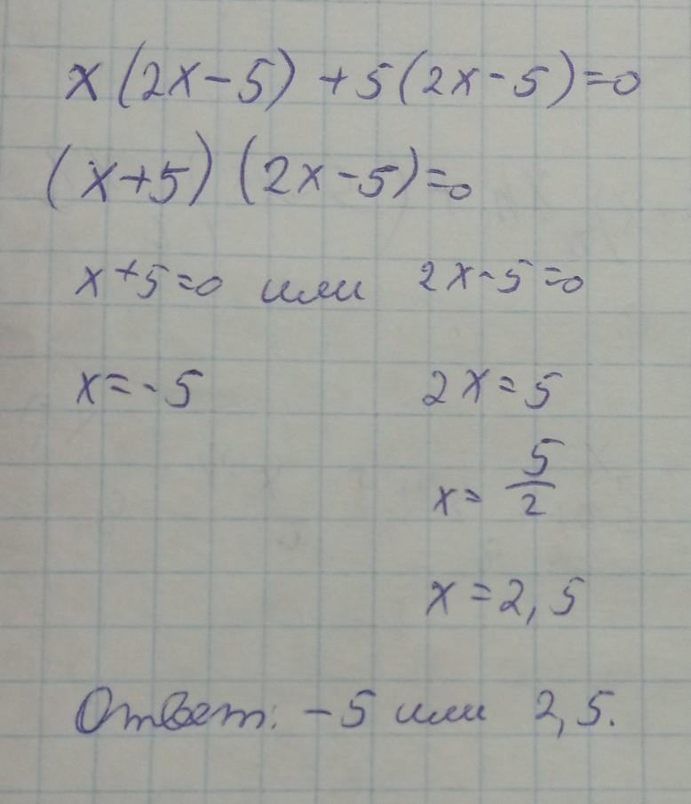 (2х-5)(х+5)=0; 2х-5=0; х1=2,5; х+5=0; х2=-5;
