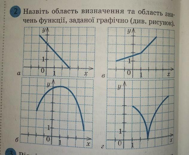 Опустить перпендикуляры из крайних точек графика сначала на ось Ох (область определения), потом на ось Оу (область значений).