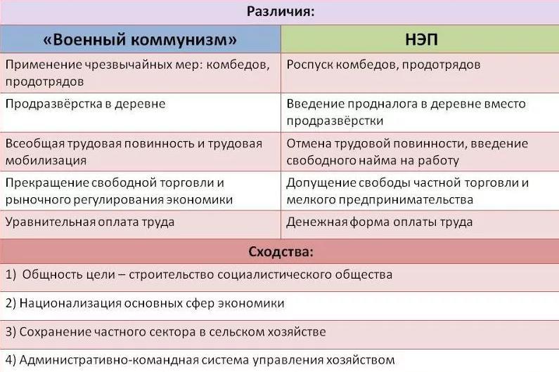 Определите особенности и схожие направления политики «военного коммунизма» и Новой экономической политики (не менее 3 примеров по каждому направлению)