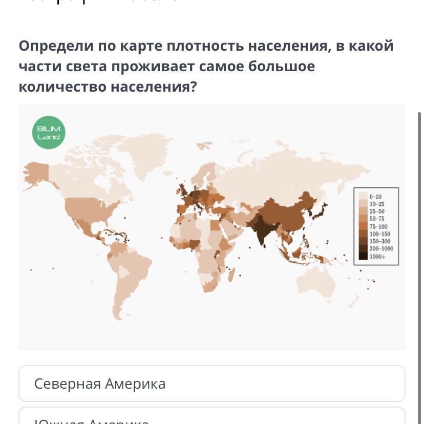 Определи по карте плотность населения, в какой части света проживает самое большое количество населения?
