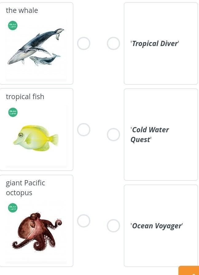 listen to an online guide in a city aquarium and match the animal ti their sections