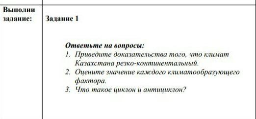 1.На терретории Казахстана ярко выражены 4 времени года:Морозная Зима,Расцветающая Весна,Жаркое Лето,Прохладно Осень.