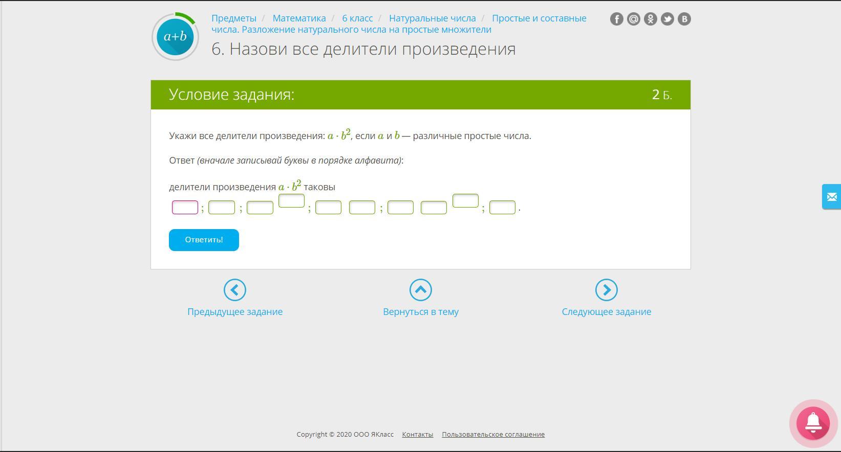 Ответ:1; a; b в кв; ab; ab в кв; b