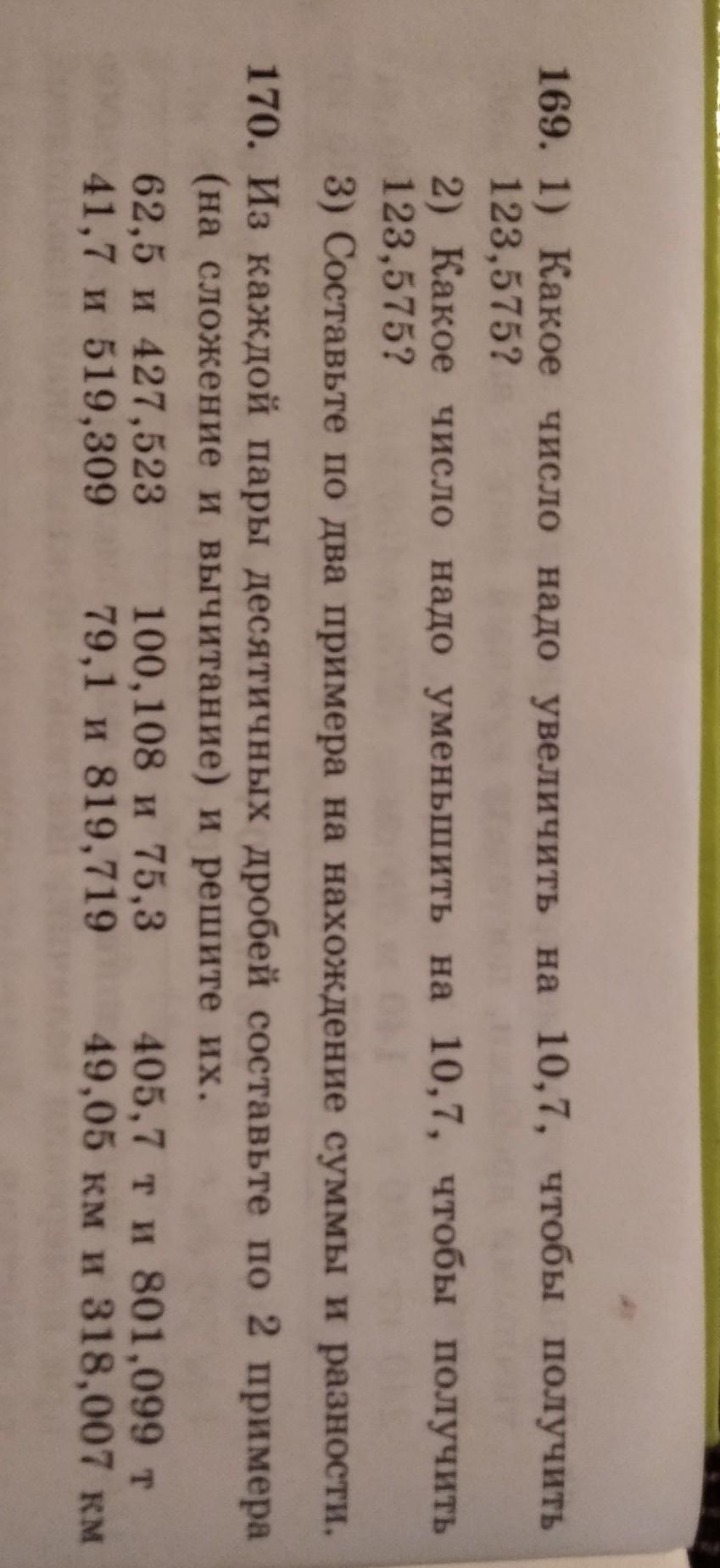 169. 1) Что-бы найти ответ этого задания мы от 123,575 отнимаем 10,7 : 123,575-10,7=112,875 .