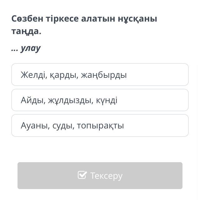 Сөзбен тіркесе алатын нұсқаны таңда.