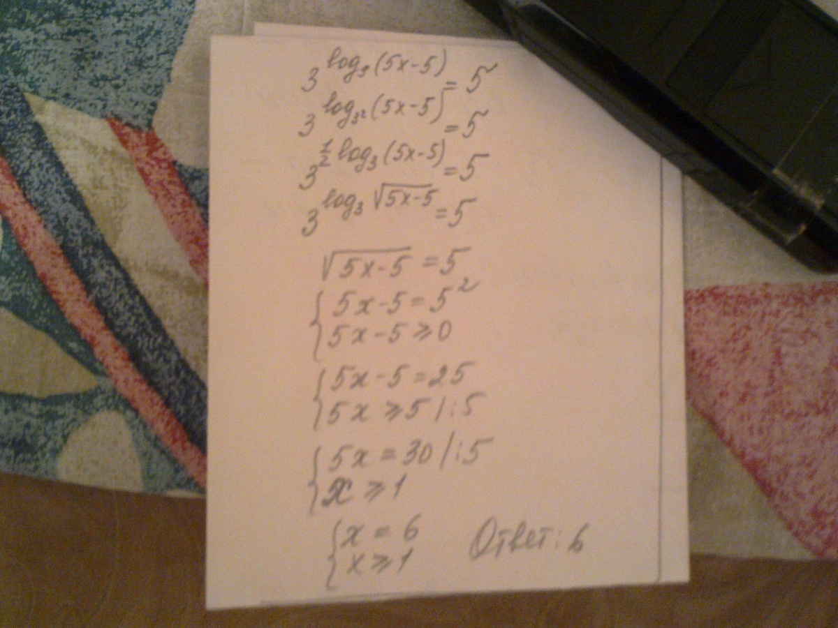 3^log3(корень(5x-5))=5