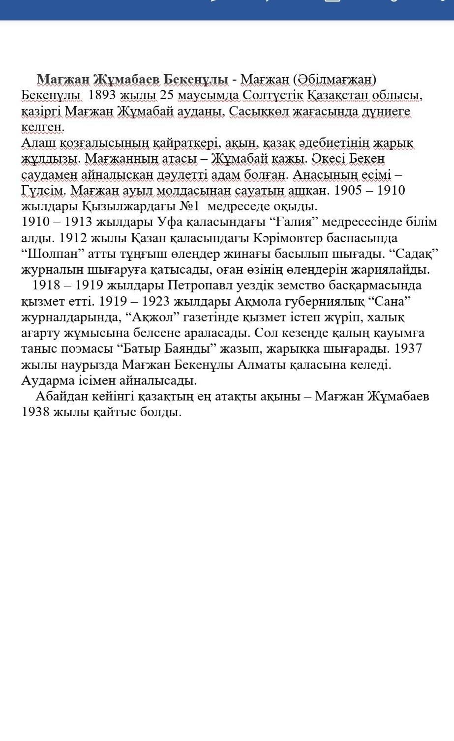 1. Мағжан Жұмабаевтың шын есімі?