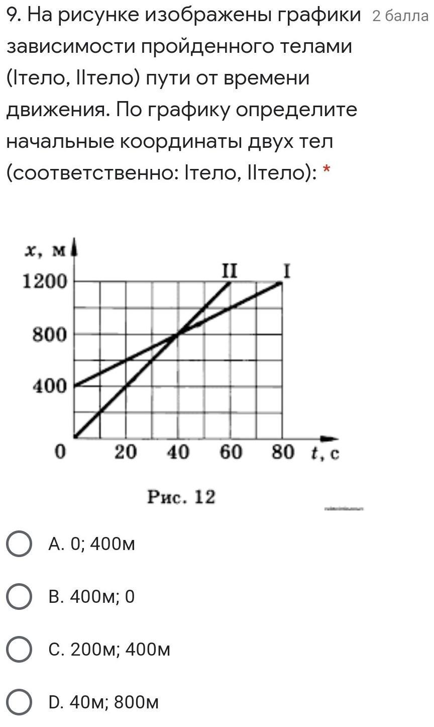 У первого тела 400м, у второго 0