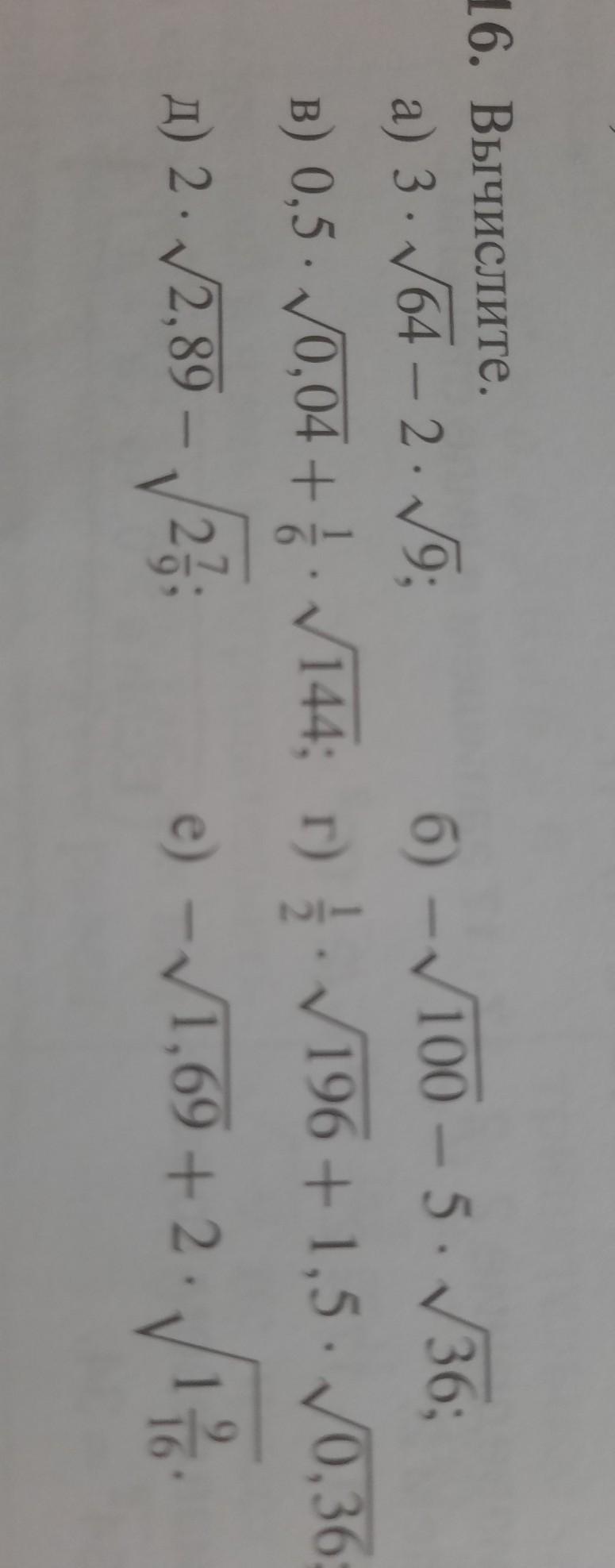 г) (1/2)*√196+1,5*√36=(1/2)*14+1,5*6=7+9=16