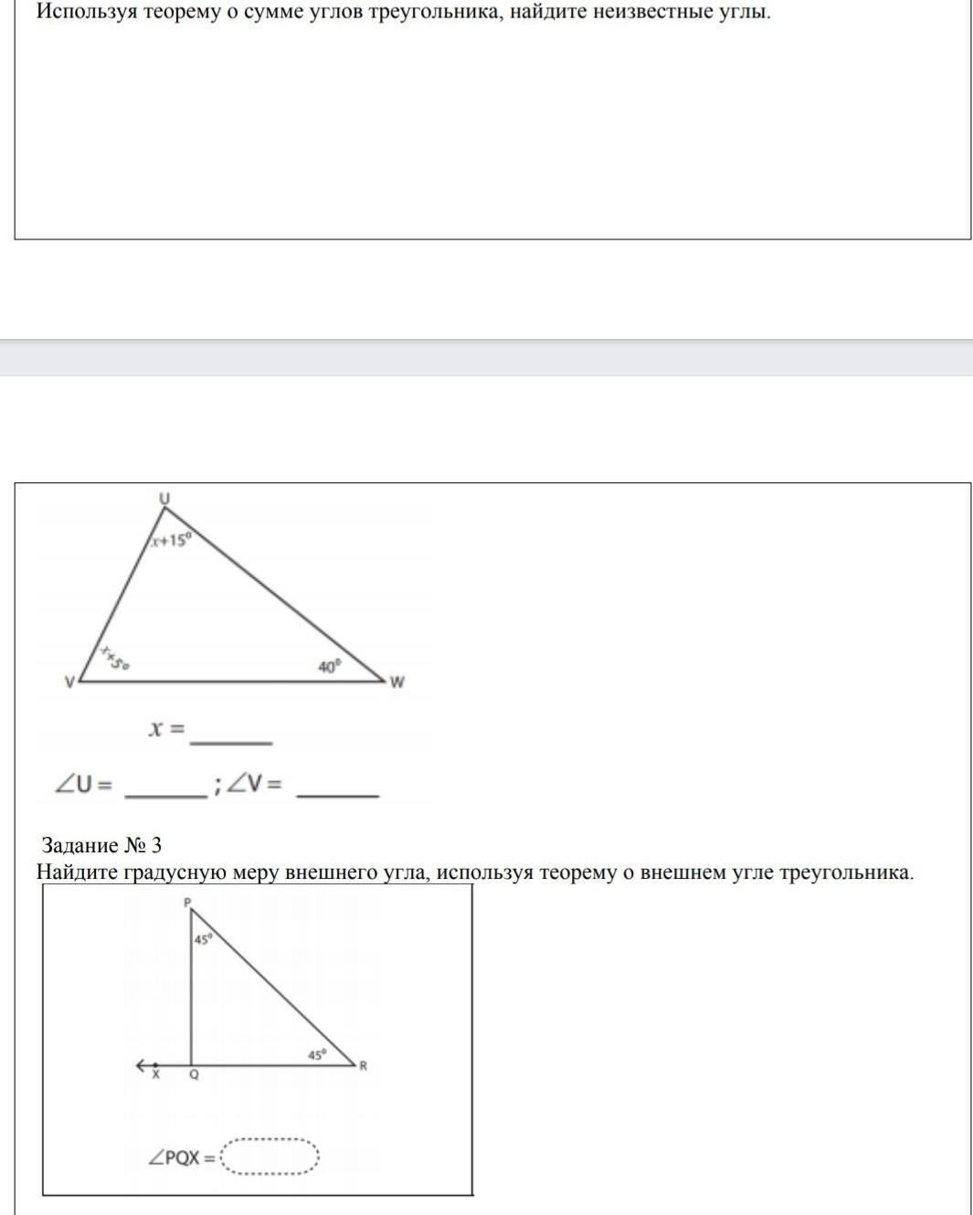 Первое:Используя теорему о сумме углов треугольника, найдите неизвестные углы