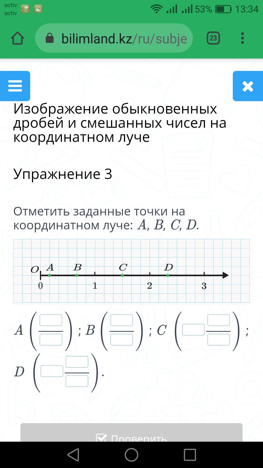 Отметить заданные точки на координатном луче: A, B, C, D.
