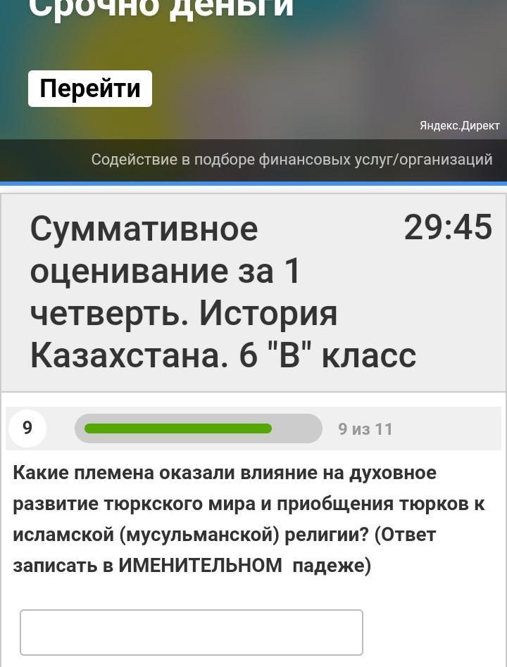 Пройди этот тест как хочешь, а после зайди когда будет результат в ответы и напеши все правильные ответы там на лесте и спеши пройдя заново тест