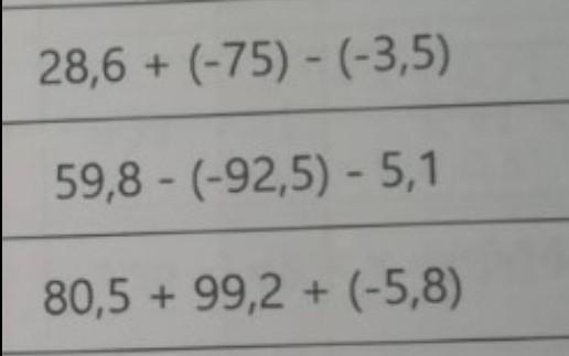 28,6 + (-75) - (-3,5) = 28.6 - 75 + 3.5 = - 46.4 + 3.5 = - 42.9