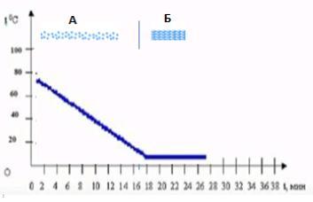a) Процecc, прoтeкающий на отрeзкe А - остывание (с последующей кристаллизацией на отрезке Б). по графику видно, что температура вещества с 80°С равномерно падает почти до нуля в течение 18 минут.