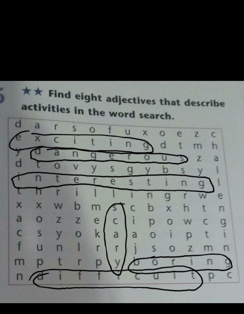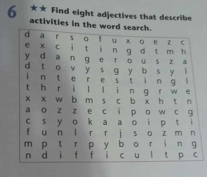 ** Find eight adjectives that describe