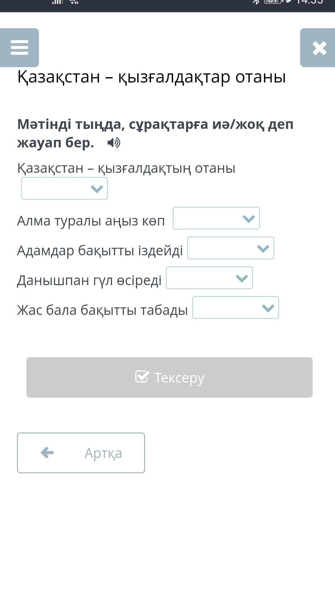 1- жоқ 2 жоқ 3 иә 4 иә 5 иә