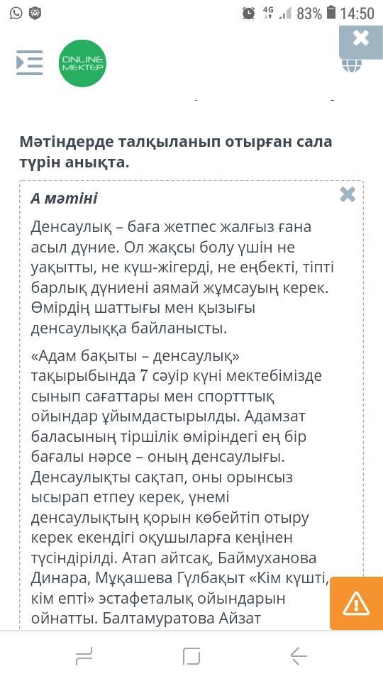 Мəтіндерде талқыланып отырған сала түрін анықта.