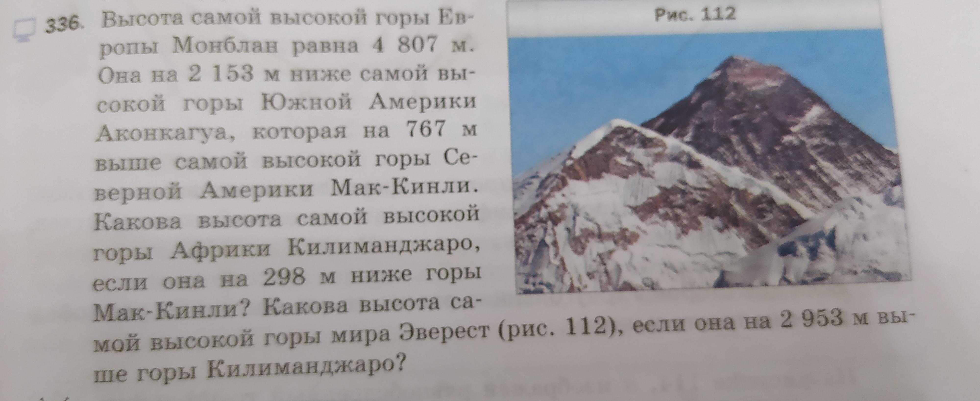 1) 4807+2153=6960(м.) - Аконкагуа.