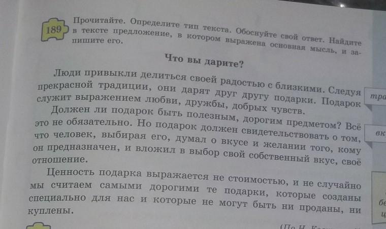 Прочитайте.Определите тип текста.Обоснуйте свой ответ.Найдите в тексте предложение,в котором выражена оснавная мысль, и запишите его.