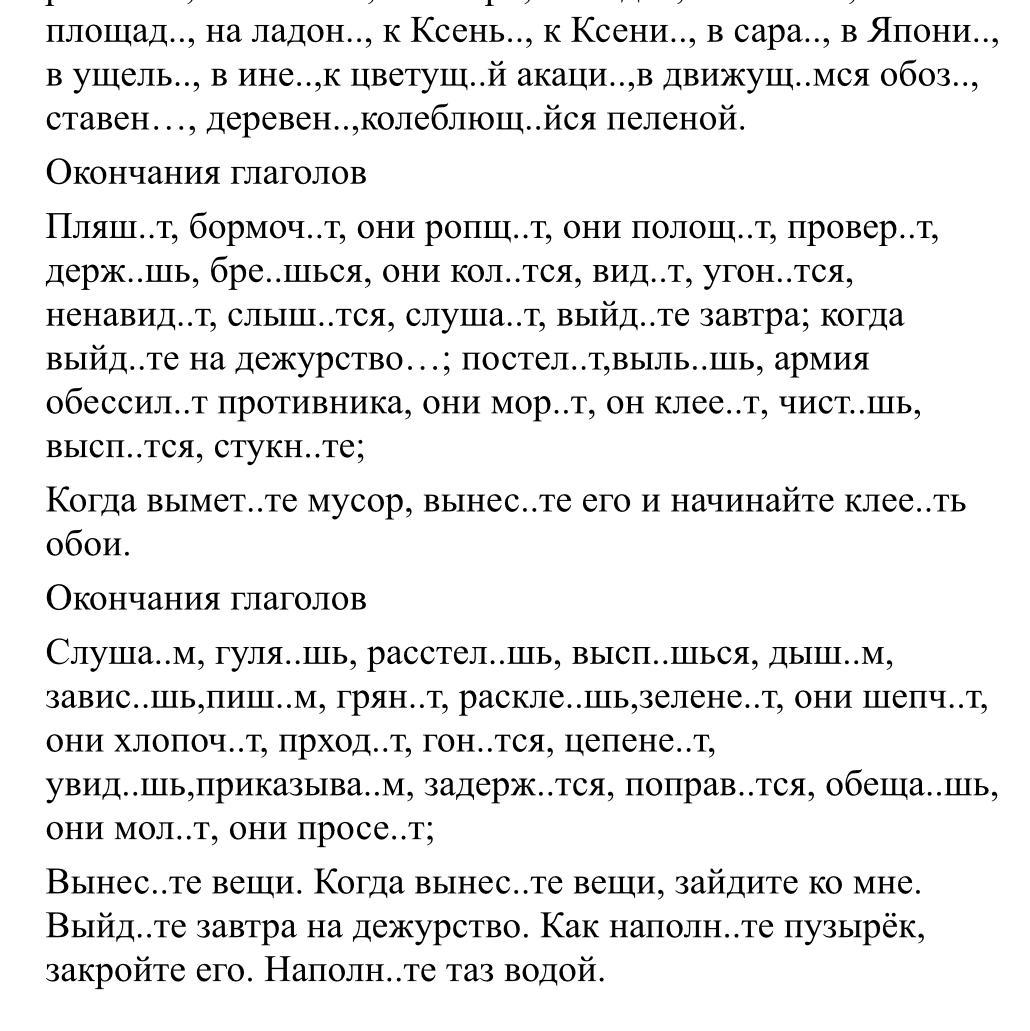 завис..шь,пиш..м, грян..т, раскле..шь,зелене..т, они шепч..Т,