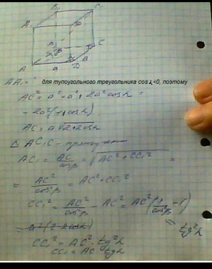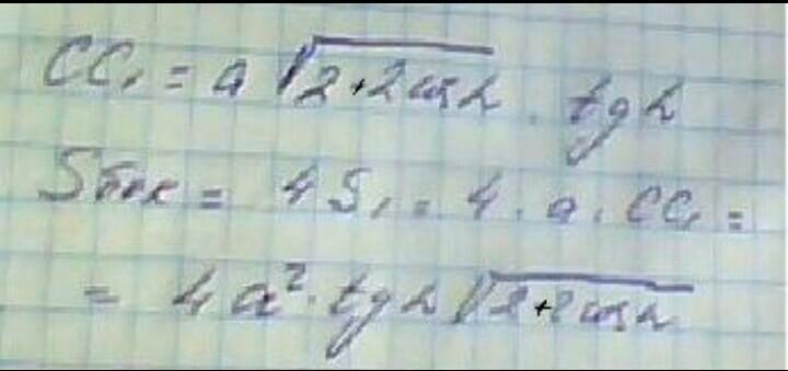 Основою прямого паралелепіпеда є ромб із гострим кутом α більша діагональ паралепіпеда d і утворює з площиною основи кут β.Знайдить площу бічної поверхні паралепіпеда.